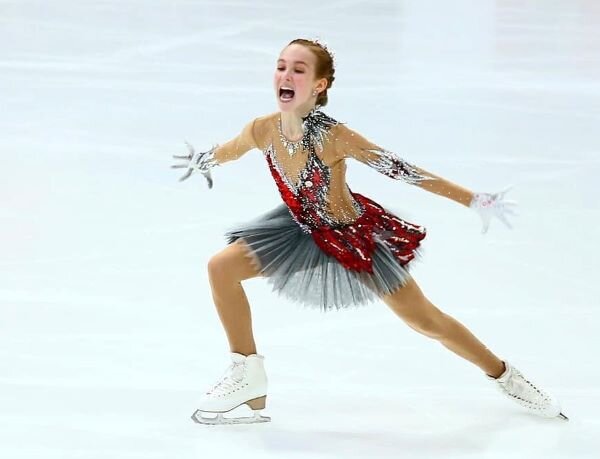 И не зря, заранее назначенная фаворитка, вышла в серебре инкрустированном многоцветными фианитам и с короной на голове. Алый, стекал с груди на балетную пачку, стыдливо прикрывающую коленные чашечки. Это вам не Загитова в Дон Кихоте, оголтело демонстрировавшая откляченную попу!