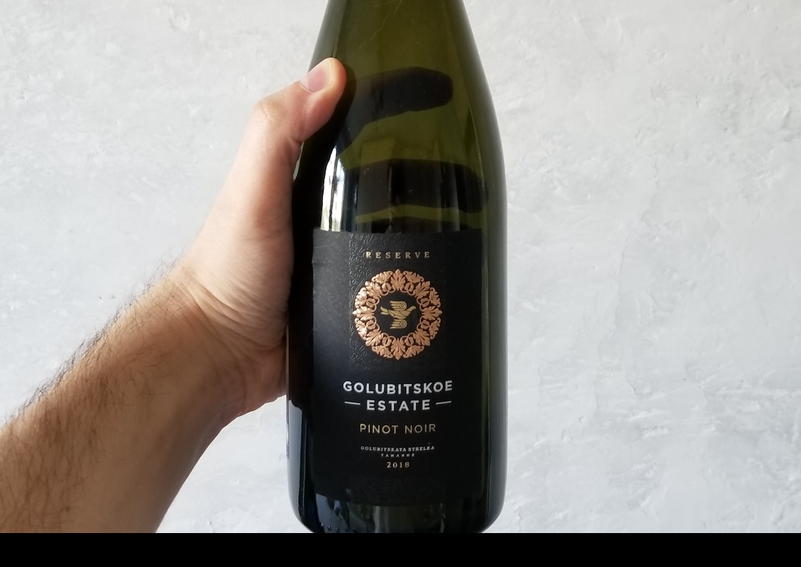 Лаконичный премипльный, увесистая бутылка. Форма такая, что как снаряд ровно лежит в руке. Вот и я попался на маркетинг и на пробу схватил краснодарский Пино Нуар за 700 рублей.