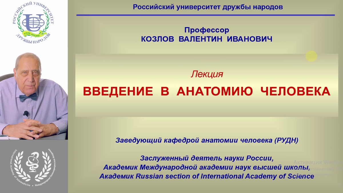 Первая лекция для первого курса "ВВЕДЕНИЕ В АНАТОМИЮ" . Читает заведующий кафедрой анатомии человека РУДН, профессор, заслуженный деятель науки РФ, академик Международной академии наук высей школы. Увлекательная, авторская лекция, которая расскажет: что такое анатомия и как ее изучать? В лекции Вам расскажут про историю анатомии, познакомят с основными понятиями и многое другое!