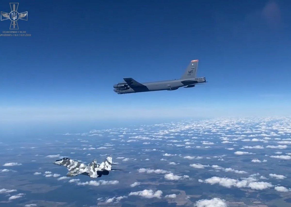 Теперь стало кристально ясно, для чего был затеян Майдан. США понадобилось шесть лет, чтобы добиться заветной цели и превратить территорию Украину в плацдарм ядерного нападения на нашу страну. Из антироссийского государства в ряду других Украину превращают в наконечник военного копья, направленный в сердце России. Около 12:00 4 сентября истребители Воздушных сил Украины взяли на сопровождение три стратегических бомбардировщика B-52H Stratofortress ВВС США. Украинские Су-27 и МиГ-29 обеспечили сопровождение американских бомбардировщиков через всю территорию страны от западной границы до побережья Азовского моря и в обратном направлении, пока носители ядерного оружия отрабатывали удары по российским объектам. /Видео: Минобороны Украины/ Стратегические бомбардировщики B-52H Stratofortress ВВС США активно работали сегодня в воздушном пространстве Украины с первой в истории боевой миссией над территорией бывшей братской республики. Данное событие представляет собой психологический Ру