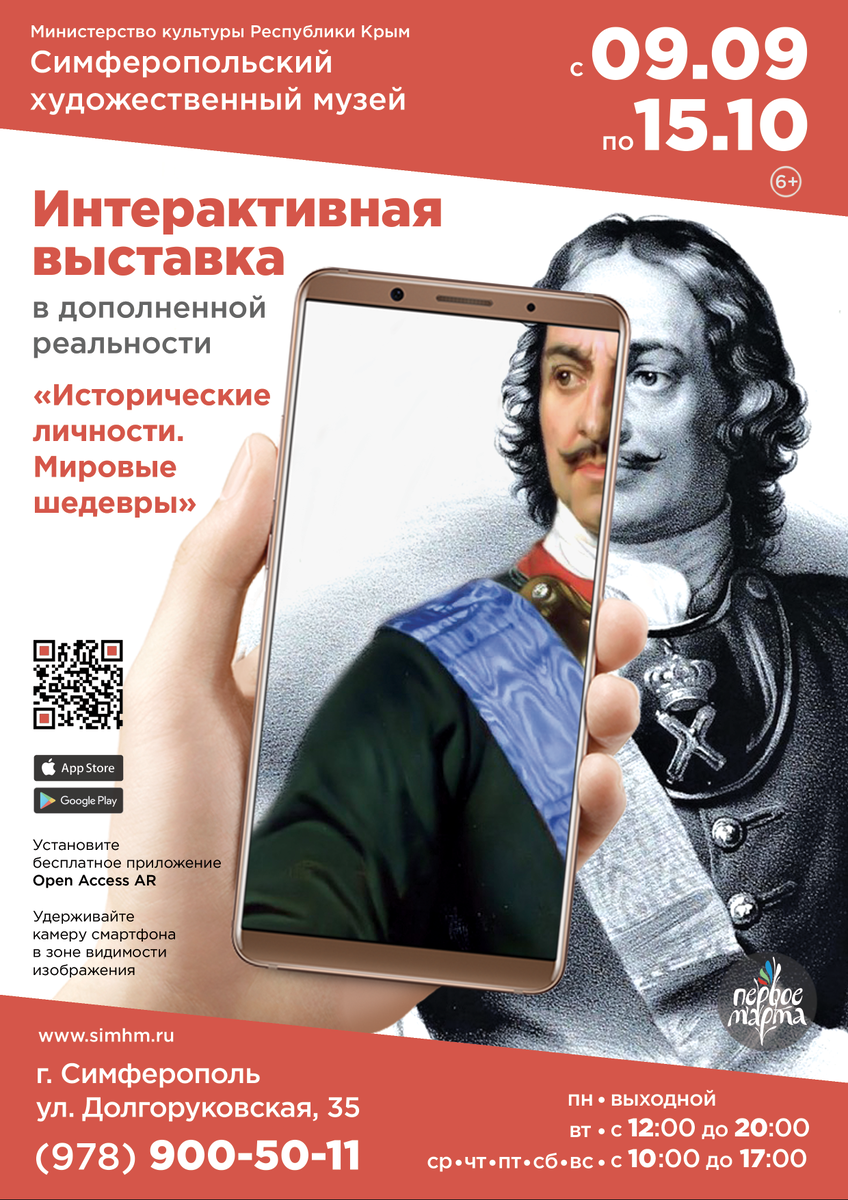 В Симферопольском художественном музее открывается выставка «Мировые шедевры. Исторические личности». Впервые в залах разместится экспозиция такого формата. Масштабный проект «Фрагменты истории в дополненной реальности» уже охватил множество музеев и выставочных залов России.