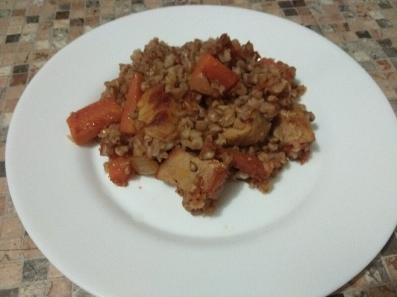 Недавно я сделала для себя открытие, что в духовке можно запекать не только картошку, мясо и овощи, но и готовить полноценные блюда из круп. Гречка, приготовленная в духовке с мясом, получается особенной на вкус, не такой, как обычно, при варке. Она хорошо пропаривается, пропитывается соком мяса и овощей. Никогда не разваривается, получается сочной и рассыпчатой.
