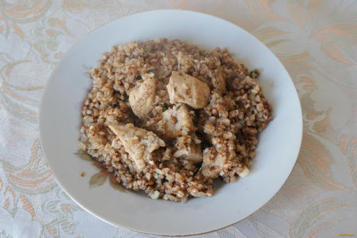 Обед: куриная грудка тушеная или отварная, гречка рассыпчатая