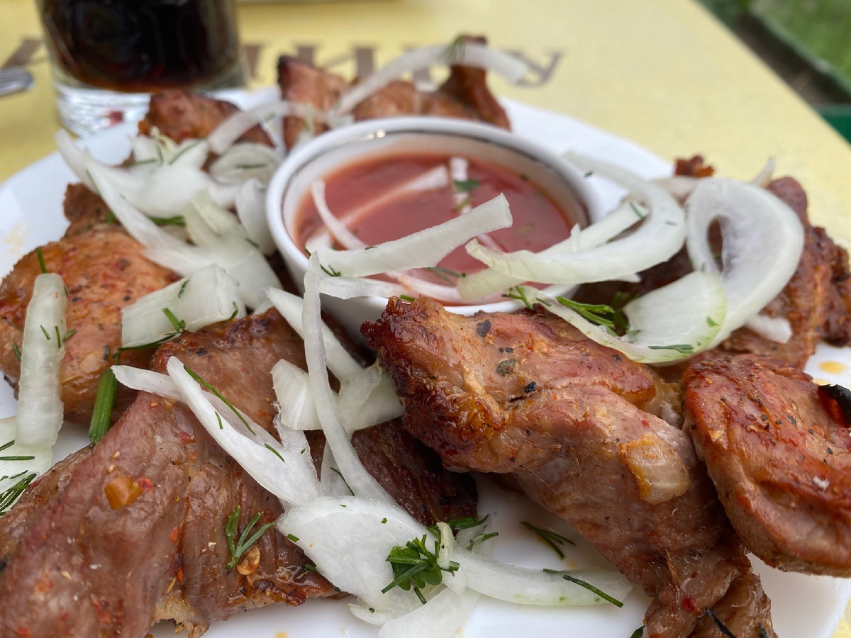 Невероятно сочный, нежный и вкусный шашлык удалось нам попробовать в одном из заведений города Улан-Удэ.