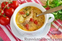 Любимый суп Вкусный куриный суп с помидорами и сметаной готовится из доступных продуктов, а результат потрясающий. Продукты Куриный окорочок - 1 шт. (250 г) Картофель - 1 шт. (150 г) Помидор - 1 шт. (100 г) Лук репчатый - 1 шт. (70 г) Сметана - 2 ст.л. (60 г) Зелень укропа и петрушки - 10 г Масло растительное для жарки - 1 ст.л. Соль - по вкусу Перец - по вкусу Вода - 1,5 л Подготовить продукты для любимого куриного супа с помидорами. Куриный окорочок отварить на медленном огне в 1,5 л воды до готовности, примерно 30 минут. Достать окорочок из бульона, дать остыть, разобрать окорочка, оставив только мясо. Разделить курятину на небольшие кусочки. Бульон процедить и перелить обратно в кастрюлю. В кастрюлю с бульоном выложить куриное мясо, поставить на плиту закипать. Тем временем картошку почистить и порезать небольшими кубиками. Высыпать в бульон, варить 5 минут. Помидор тоже порезать небольшими кубиками. Выложить помидор в бульон с картошкой и курицей, варить минут 5-7. Лук почисти