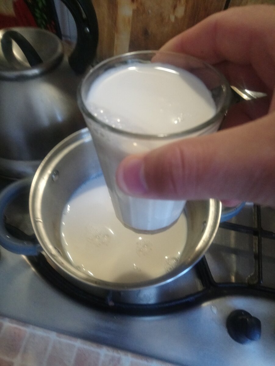 Четыре ложки манной крупы, засыпаю в холодное молоко.