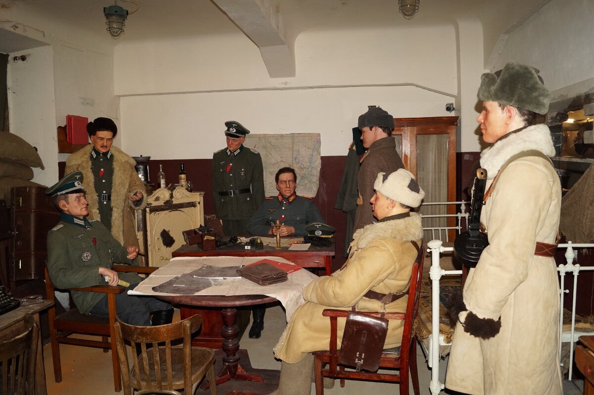 Латексные фигуры участников переговоров с советской и немецкой стороны изготовили художники из Новосибирска. А волгоградские историки консультировали их. С помощью фотографий добились максимального портретного сходства. Манекены привезли из Сибири в разобранном виде. В Волгограде их смонтировали, нарядили в военную форму и разместили в той самой комнате, где происходили события 77-летней давности.