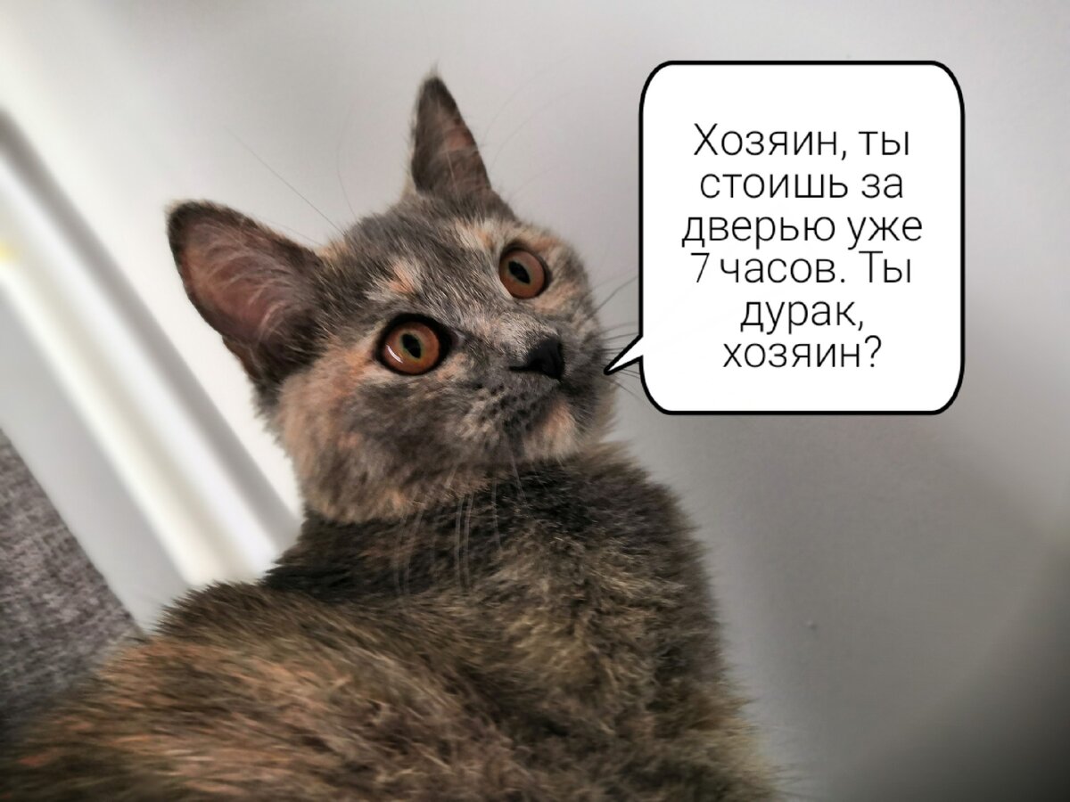 Когда мы уходим на работу, наши хвостики думают, что мы 7 часов стоим за дверью.