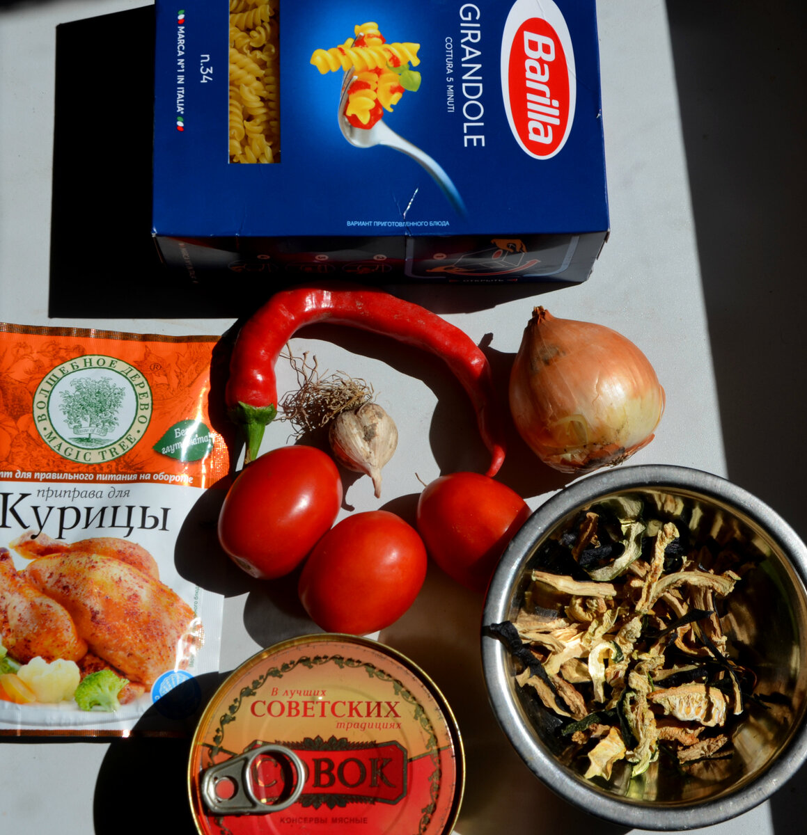 2. Макаронные изделия, половина пачки. Тут все не так критично, но тоже лучше взять из твердых сортов пшеницы, чтобы блюдо не превратилось в неаппетитную кашу. На фото - наши любимые, варятся всего 5 минут.