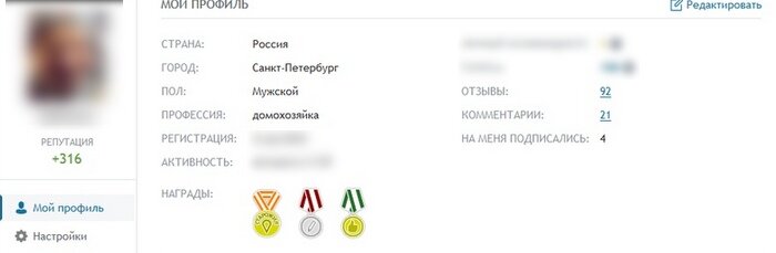 за год работы я написал 92 отзыва и 21 комментарий и получить три медальки (судя по всему ни на что не влияющие).