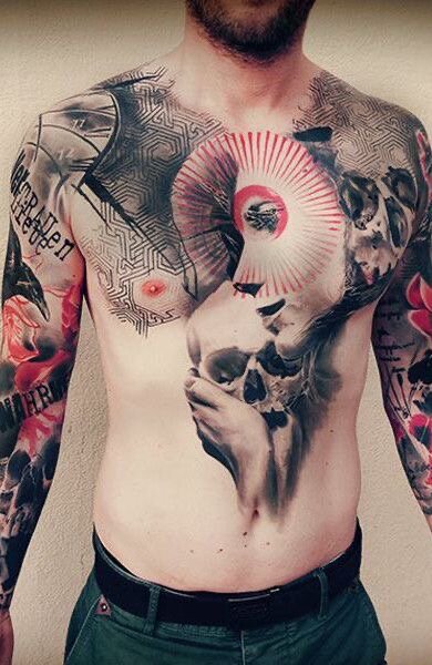 Тату в стиле трэш полька берет свое начало в вырезках из газет и журналов. Изображения представлены в виде иллюстраций и фото коллажей. Кроме того, часто наносят надписи, которые имеют вид заголовка или лозунга. Данный стиль является своеобразным вызовом всей тату-культуре. Он пронизан дерзостью и агрессивностью, но, в то же время, способен показать в привлекательном свете самые неприятные и отталкивающие вещи. Тату трэш полька преимущественно выбирает молодежь, которой близок дух бунтарства. Важные особенности стиля трэш полька Направление не имеет никаких ограничений, привычные вещи искажаются и доводятся до абсурда. Тату в данном стиле позволяет молодым людям стать индивидуальными, выделиться из толпы, проявить свое внутреннее состояние. Преимущественно это визитка, бунтующих против однообразия и серости, подростков. Основными отличительными особенностями стиля трэш полька являются следующие моменты: Татуировки в данном стиле разительно отличаются от других направлений. Трэш поль