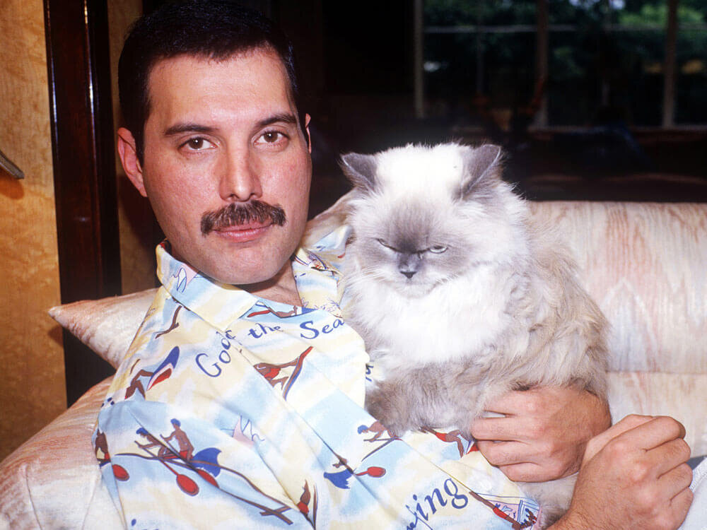 Фредди Меркьюри, Солист группы Queen, был, пожалуй, одним из самых известных кошатников. Всего у него было около 10 питомцев, которых он считал своей семьей. Меркьюри звонил им, когда ездил на гастроли, и просил каждого позвать к телефону. У кошек были свои индивидуальные рождественские носки, куда клались подарки. Певец посвящал целые музыкальные альбомы своим любимцам. Даже на последнем