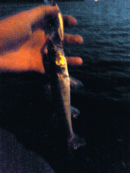 На часах 23:30. Следующей поклевки пришлось ждать долго. Случилась она в 1:10. На мягком мягком твиче взял(точнее за бок прицепился) судачек уже побольше грамм 300.