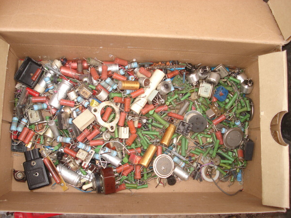 За полную же версию статьи со схемой и даже печатной платой предлагается заплатить. И поискав ещё героев, кто уже собирал бы эту вещицу и рассказал, как это правильно сделать, я понял, что придется платить. ...Ну, или потратить время и разобраться, как это вообще работает и заодно подтянуть знания по радиотехнике. Микросхему я купил SN74HC132N. Транзистор 2N7000 было легко купить, а вот IRLML2502 нужно было заказывать. Из материнок от ПК и ноутов я заранее навыпаивал кучу различных транзисторов и был уверен, что такой же или подобный точно найду. Но оказалось, что в материнках таких практически не бывает! Практически, потому что один единственный мосфет, подходящий по параметрам, я все таки нашел и возлагал на него большие надежды. Так же скачал нужный номер радио и подробно изучил схему и статью в журнале. Питать приставку от мультиметра я, конечно же, не собирался, поэтому в схему добавил стабилизатор на 5 вольт.
