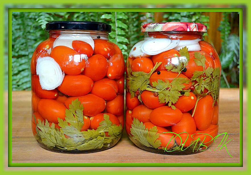 Помидоры, маринованные с луком и петрушкой — это прекрасная закуска на зиму. Они получаются ароматными и сочными. Такое блюдо всегда выручит вас, если к вам неожиданно нагрянут гости. Помидоры, консервированные с луком на зиму станут отменной закуской к мясу или гарниру. Да и просто, открыв такую баночку зимой вы всегда сможете насладиться приятным пикантным вкусом. Готовятся такие помидоры