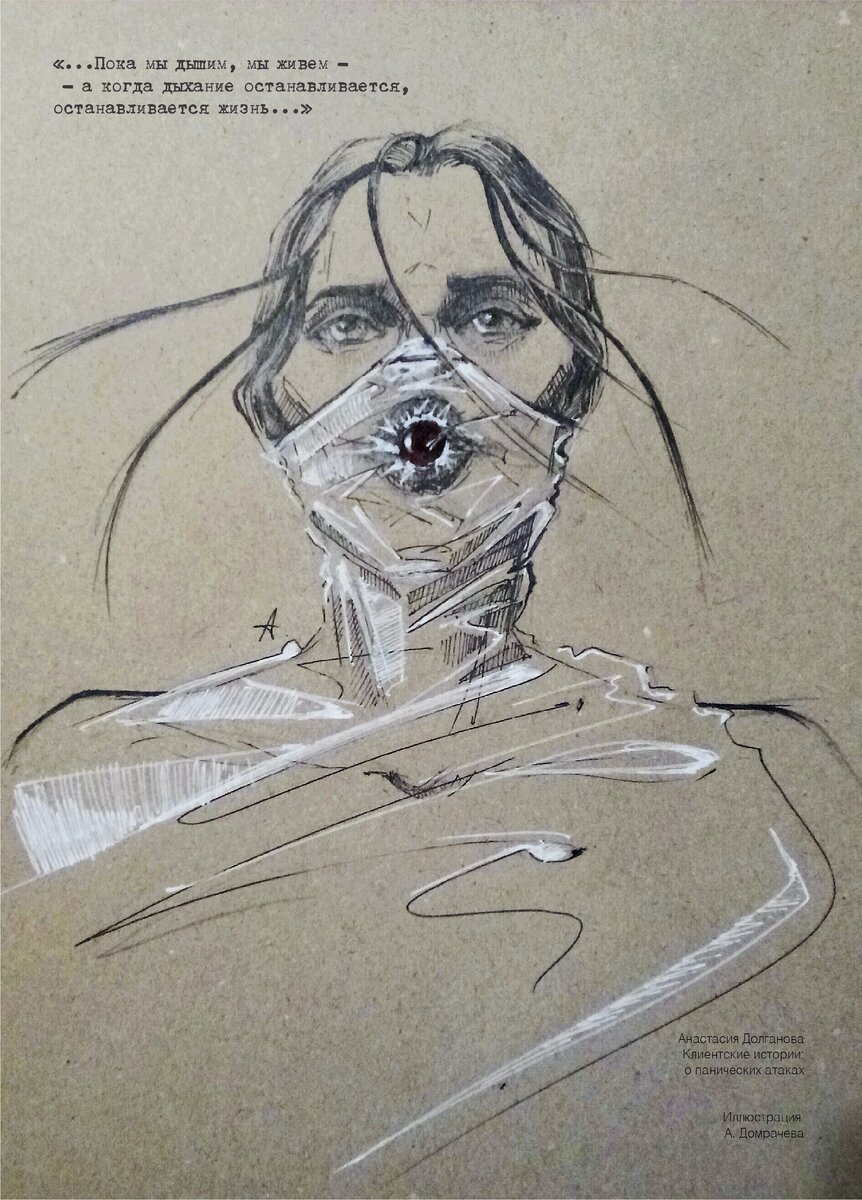 Мой клиент, молодой мужчина, заметил, что останавливает дыхание тогда, когда с ним говорю я, его терапевт. И пока я разговариваю, он не дышит. Когда Игорь начинает говорить — он снова может дышать. Если я делаю комментарий или вступаю в диалог, Игорь замирает, останавливая дыхание. И это происходит не только тогда, когда он общается со мной. Он может перестать дышать на улице, во время общения с другими людьми — то есть, его дыхание всё время неровное, сбивчивое. И когда уровень этой задержки превышает какую-то критическую массу, то случается паническая атака.