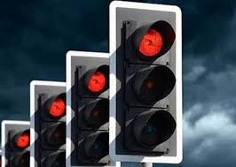 Движение автотранспорта запрещают следующие сигналы светофора (как круглые, так и в виде стрелок):