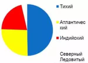 4- Тихий - 178,6 млн. км2 (50%); Атлантический - 91,6 млн. км2 (26%); Индийский - 76,2 млн. км2 (21%); Северный Ледовитый - 14,7 млн. км2(3%); 1- Пролив-водное пространство расположенное между двумя участками суши и соединяющее смежные водные бассейны или их части.
