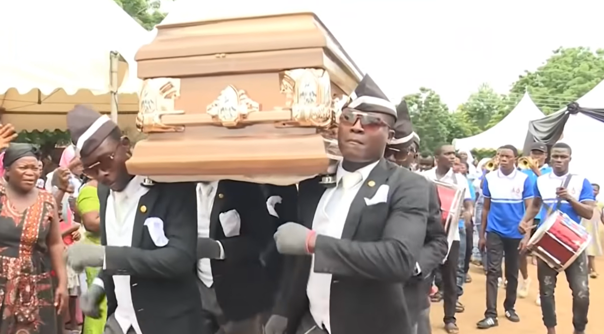 Впервые видео с танцующими гробовщиками появилось в интернете в 2017 году. Его выложил тревел-блогер Travelin Sister, который рассказал о необычной традиции в африканской стране Гана, где местные жители специально нанимают носильщиков гробов, которые танцуют под веселую музыку во время прощальной церемонии. Так местные жители провожают усопших «домой».
