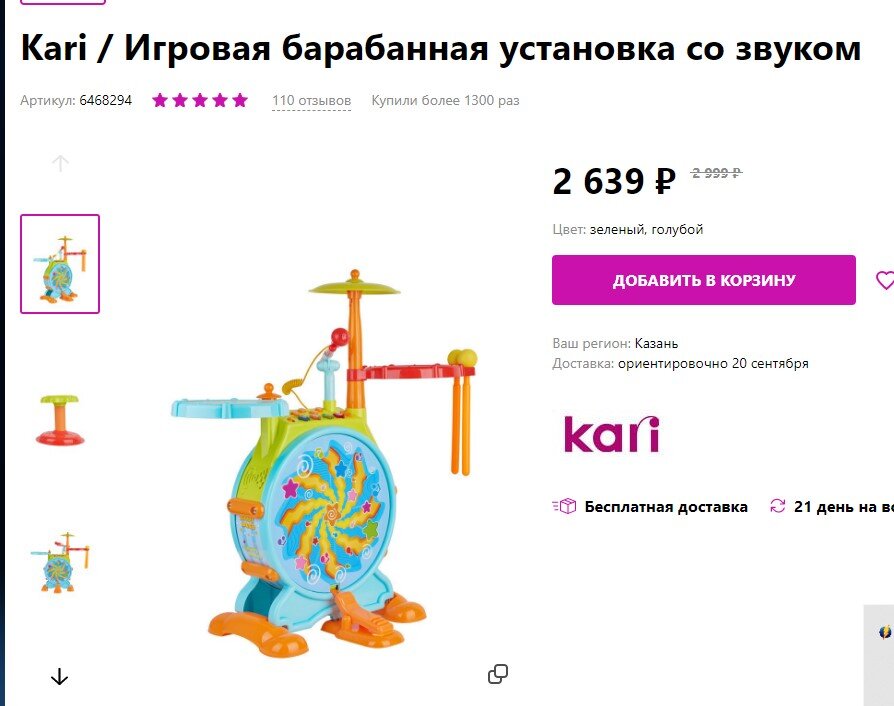 1. Часто крупные интернет-магазины "играют ценой". Например, Wildberries. К примеру, я купила барабанную установку для детей на популярном интернет-магазине за 1699 рублей, хотя часто цена висит около 2,5 тысяч рублей. Но позже цена упала до 1,4 тысяч, так что я немного прогадала =)