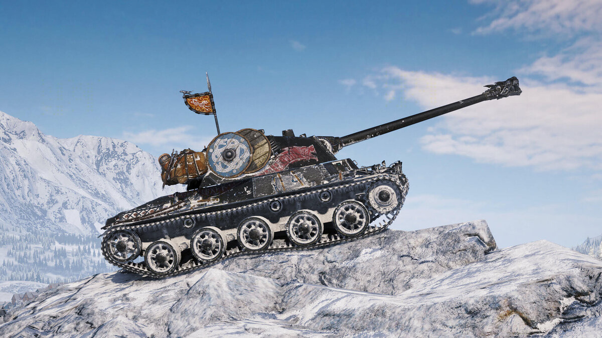 Премиум ст 8 уровня имеет как базовый стиль, так и покупной супер-стиль «викинга». Разработчики, которые занимались внешним видом отработали на полную, потому что прорисовка мелких деталей прекрасна. А вот что же с основными характеристиками танка мы распишем чуть ниже.