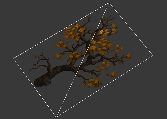 Для этой красивой ветви они использовали всего лишь 2 треугольника вместо х-тысяч на «реалистичную» модель. Кстати, никогда не забывайте, что даже самая большая мега-супер-хайполи-модель (хайполи — от англ. highpoly, т.е. с большим количеством полигонов — прим.пер.) рендерится на плоскую поверхность (фрейм-буфер или, если проще, ваш монитор). Так что если мы не говорим про Oculus Rift (или другие технологии, которые предоставляют «реалистичное» 3D) и в игре нет возможности сильного изменения перспективы (поворот камеры, масштабирование и т.д.) то, возможно, лучше не сходить с ума и просто использовать 2D-элементы вместо тысяч полигонов. Но это моё мнение, которое можно оспорить.