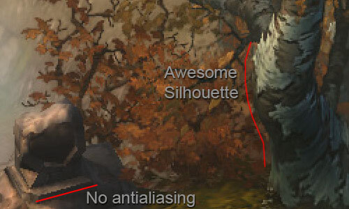 Когда я впервые увидел деревья в Diablo 3 на скриншоте, заметил одну особенность. Их силуэты были сглажены, в то время как на других объектах были видны типичные «ступеньки» отсутствующего сглаживания.