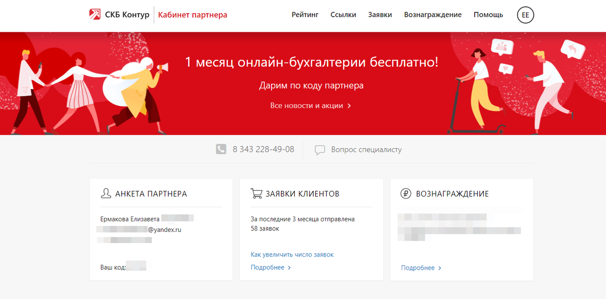 В прошлом посте я рассказывала, почему создала этот блог и в чём заключается заработок через реферальную программу СКБ Контур. Если вкратце, то вы рекомендуете сервис СКБ Контур и если по рекомендации приобретается продукт, то вы получаете за это деньги. С чего начать С регистрации. Там нет ничего сложного и после заполнения формальностей в виде почты и пароля вы попадёте в личный кабинет партнёра и увидите там такое окно. Самое интересное, что можно увидеть сразу после регистрации, это раздел рейтинг, там мы увидим топ-партнёров и сколько они зарабатывают. Тут Контур немного хитрит и указывает не количество полученного вознаграждения, а на сколько совершили покупки приведённые клиенты. Хитрость тут в том, что само вознаграждение отличается от продукта к продукту и точную цифру вычислить не получится.