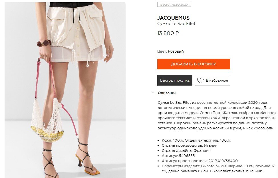 Вот, например, сумочка. Стоит она бОльшую сумму, чем составляет прожиточный минимум-2020, например, в Новосибирске. Выглядит... хм... как этот самый прожиточный минимум.