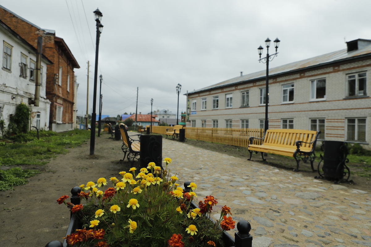 Непроходимый пустырь, поросший крапивой, в Усть-Кубинском районе Вологодской области превратили в комфортную прогулочную зону. Стилевое решение было подобрано так, чтобы оно сочеталось со стоящими рядом старинными зданиями — домом купца Ивана Никуличева и домом купца Фриса Цукермана. Новая прогулочная зона в честь исторического прошлого была названа «Купеческий дворик». «Это была заброшенная территория, там стояло шесть-восемь сараев, заросли. Крапива росла, маленькая узкая тропка была, по ней ходили редко. Его можно было вокруг обойти, но никто на этот промежуток не обращал внимания», — рассказал глава района. Средства на благоустройство администрация получила по проектам «Формирование комфортной городской среды» и «Народный бюджет». По программе «Комфортная городская среда» было выделено около 500 тысяч рублей. По программе «Народный бюджет» заложено 500 тысяч: область платит 70 процентов, 25 процентов — местные власти, пять процентов — софинансирование. Бывший пустырь теперь выгля