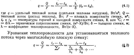 Уравнение теплопроводности для установившегося теплового потока через однослойную плоскую стенку, а также многослойную