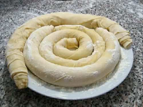 Через 20 минут раскатайте тесто в прямоугольный пласт толщиной 0,5 миллиметра. Это слоёное тесто уникально. Всё дело в том, что в отличие от классического французского теста, в данном рецепте слои получаются перпендикулярно столу. Изделия из слоёного теста, приготовленного по этому рецепту, получаются очень красивые и оригинальные.