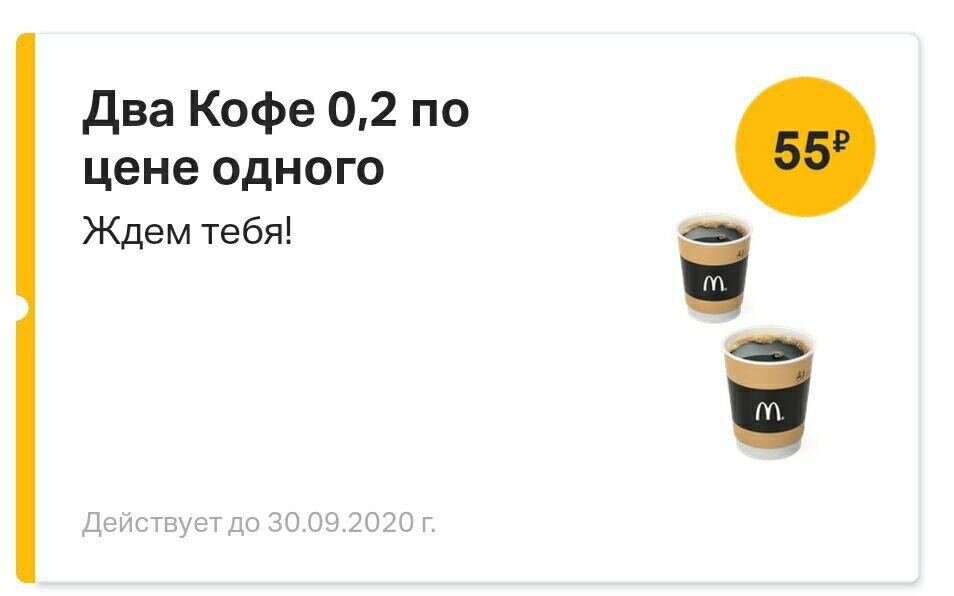 Получаем второе кофе в подарок при покупке первого кофе в Макдоналдс