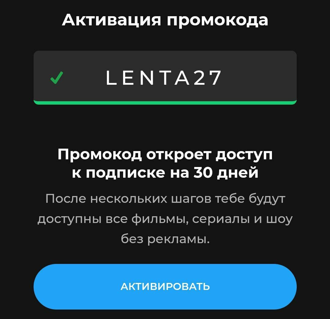 1. Переходим в раздел промокоды и вводим промокод LENTA27