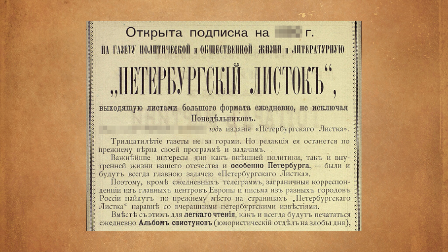 Угадайте, о какой новостройке пишет газета «Петербургскiй Листокъ»?