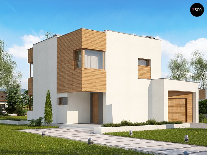 Разработка Zx51 GP представляет версию проекта Zx51 с боковым гаражом. «Пристыкованный» к дому гаражный блок не просто создаёт дополнительное помещение, но и совершенно меняет архитектурный облик здания, и даже функциональную составляющую всего проекта. Дом, в целом сохраняя форму куба, становится более разноплановым. Периметр со стороны гостиной оказывается нелинейным, что представляет интерес с точки зрения ландшафтного дизайна. Угловое расположение дома и гаража позволяет естественным образом связать оформление открытой террасы с природным окружением. В проекте предусмотрен доступ из гаража в дом.