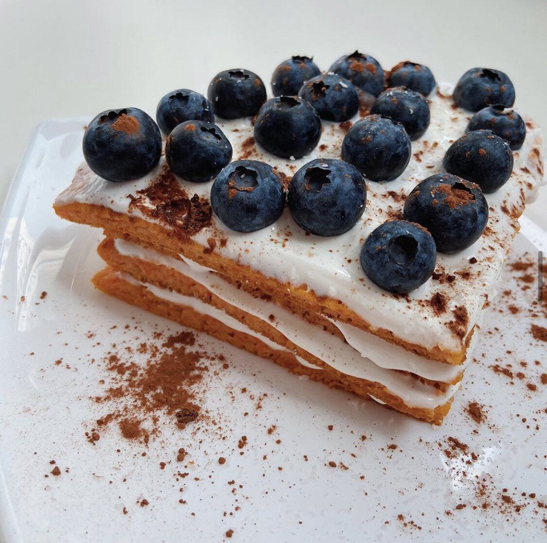 ДЛЯ КОРЖА: ДЛЯ НАЧИНКИ: Для коржа все смешиваем и обжариваем на сковороде с 2 сторон. Далее остужаем. Разделяем на 4 части и выкладываем - корж - начинка - корж и так до конца ❤️