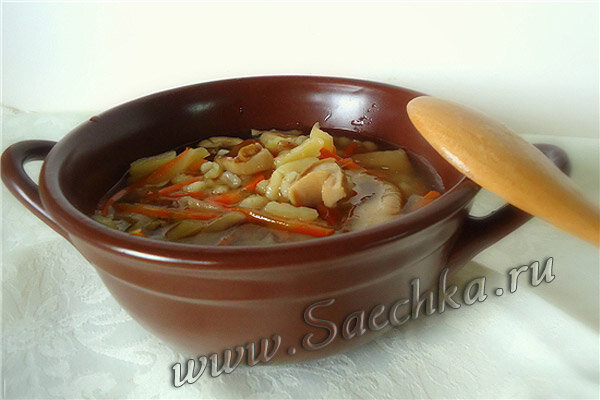 Грибной суп приготовлен с перловой крупой в мультиварке - вкусное сытное первое блюдо на обед.
