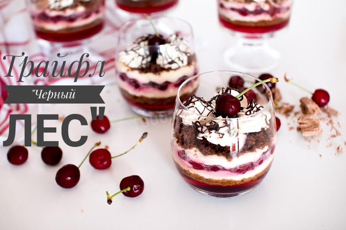8. Украшаем готовые трайфлы маленькими меренгами, ягодами вишни и растопленным темным шоколадом.