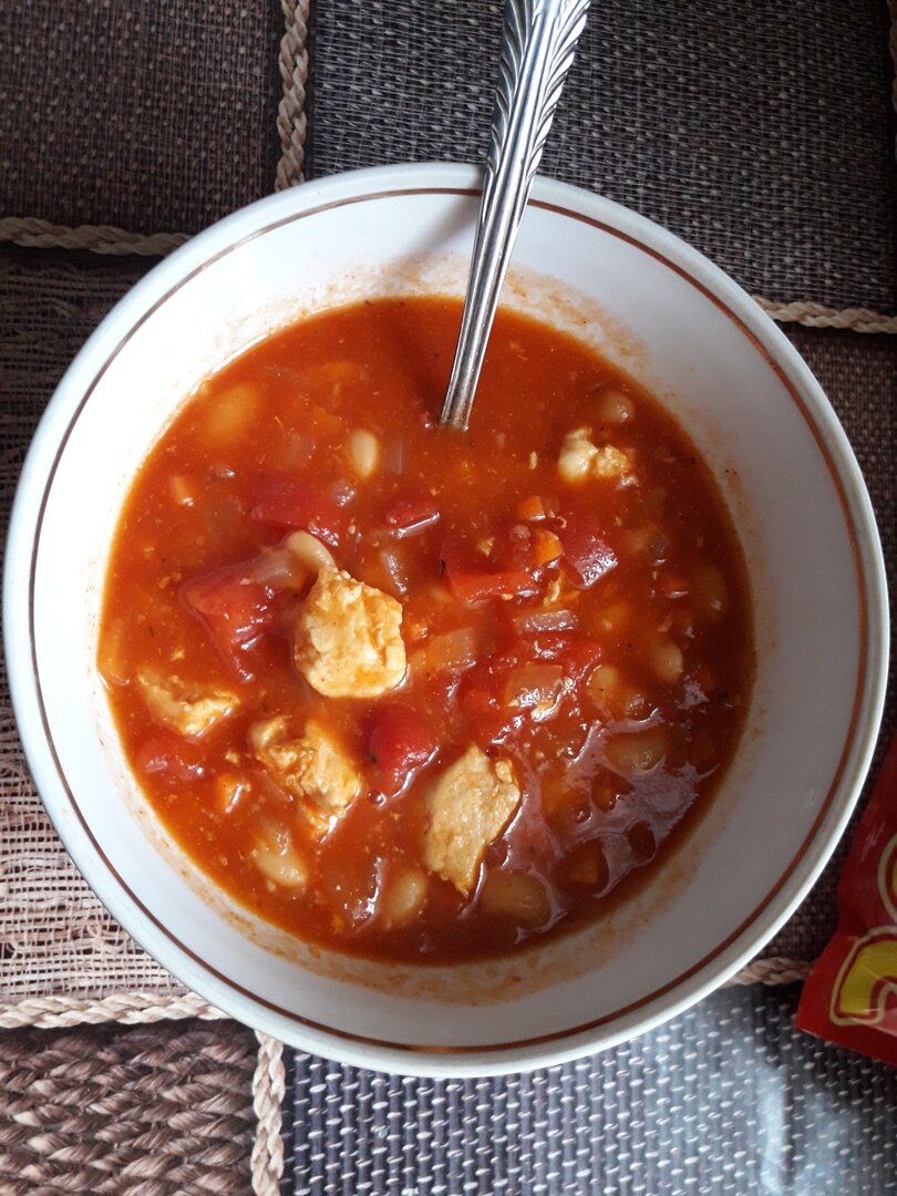 Готовое блюдо подают с отварным рисом или тортильями. Или как я наслаждаются остренькой похлебкой, в которую при желании можно добавить сметану. Приятного аппетита!