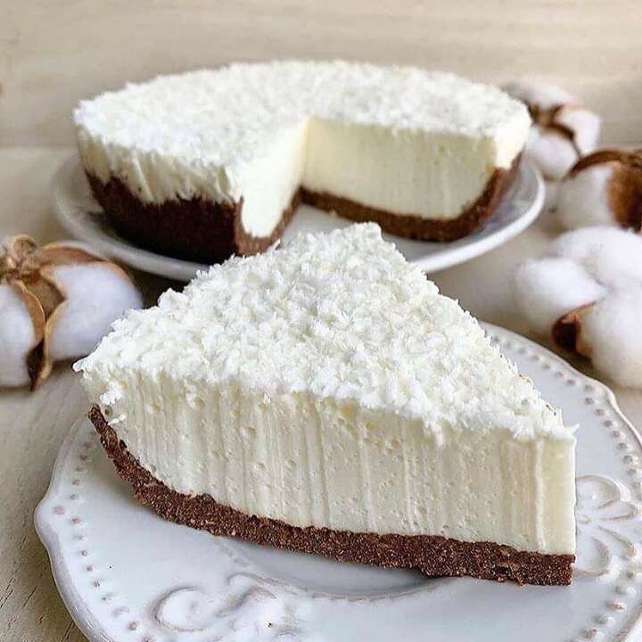Ингридиенты: Для основы: • 130гр.спелого банана • 100гр.хлебцев (использовала Фитнес ржано-пшеничные) • 10гр.какао Приготовление: Все смешать в блендере. Форму застелить пищевой пленкой. Влажными руками выложить на пленку массу и разровнять, сделать не большие бортики, примерно 1 см. Для творожного слоя: • 320гр.мягкого творога 0,1% (я использовала Домик в деревне • 210 мл молока 2,5% • 10 гр.желатина • 10 гр.сахарозаменителя • Ванилин • 10гр.кокосовой стружки Приготовление: Желатин залить молоком до набухания, затем растворить на водяной бане, не кипятить. Смешать творог, желатин, ванилин и сахзам и взбить блендером. Вылить массу на основу, сверху посыпать кокосовой стружкой. Убрать в холодильник на ночь. Приятного аппетита!