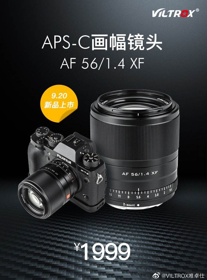Сегодня китайски производитель Viltrox объявил в китайской социальной сети Weibo, что объектив VILTROX 56mm f/1.4 XF появится в розничной продаже 20 сентября по цене $329. Этот объектив продолжит серию довольно неплохой бюджетной оптики из фикс-объективов для Fujifilm X-mount: 23mm f/1.4, 33mm f/1.4, 85mm f/1.8II (85mm f/1.8).