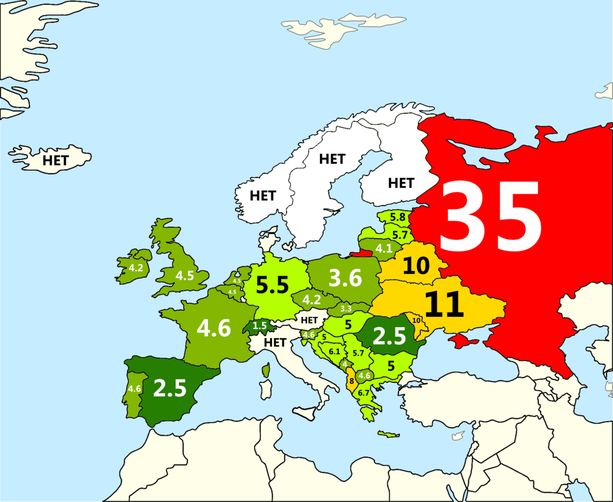 Всем здравствуйте ,дорогие читатели и сегодня я вам покажу карту Европы ,которая грубо говоря показывает как платят депутатам из разных Европейских стран. На этой карте показано во сколько раз средняя зарплата депутата больше чем минимальная зарплата в Европейских странах.