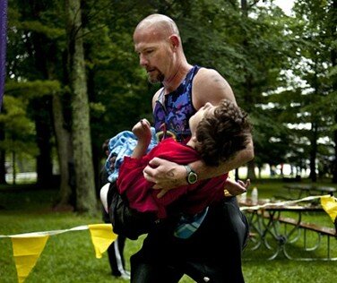 У 13-летней Мэдисон ван Бик страшное заболевание нашли в раннем детстве; увы, конкретно в её случае 'предел возможностей' оказался чрезвычайно невелик – девочка остановилась в развитии на уровне трехмесячного младенца. Тем более впечатляющей, впрочем, выглядит реакция отца девочки, 39-летнего Рика ван Бика – он не только не отказался от дочки, но еще и сделал все, от него зависящее, чтобы девочка чувствовала себя максимально хорошо. Именно благодаря Рику Мэдисон активнейшем образом принимает участие в спортивных соревнованиях местного уровня. Как это удается девочке, которая и ходить-то толком не может? Отец в прямом смысле слова проносит её через все дистанции. Последним состязанием, в котором приняла участие Мэдди ван Бик, стал местного уровня турнир по троеборью. Состязание включало в себя заплыв на треть мили (примерно 500 метров), велокросс на 12.4 мили (порядка 20 километров) и забег на 3.1 мили (около 5 километров). Водную дистанцию Мэдисон преодолела на каяке – буксировал котор