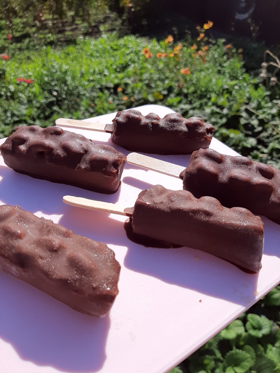 Обмакиваем каждый батончик в шоколаде и снова ставим в холодильник.