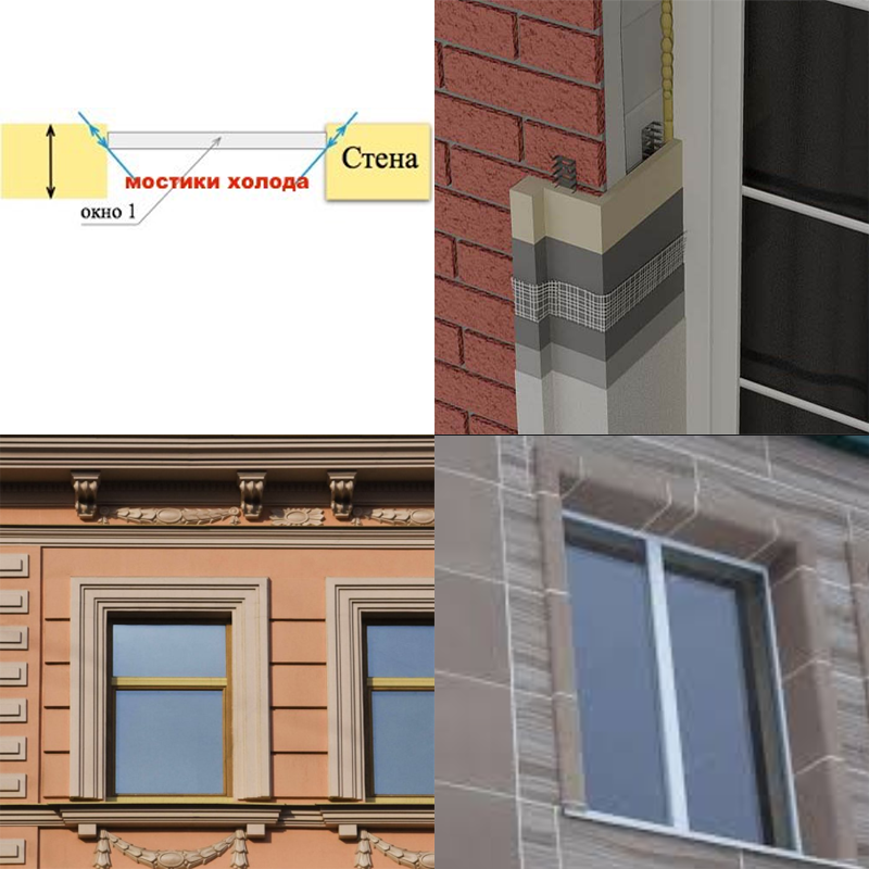 Такие откосы можно приклеить на клей из пенополистирола. После этого их можно дополнительно покрасить в цвет фасада, чтобы они не выделялись. Самая большая сложность — это выбор таких откосов, которые бы не изменили внешний вид фасада вашего дома. Из-за этого их нельзя назвать универсальным средством для утепления оконного блока.
