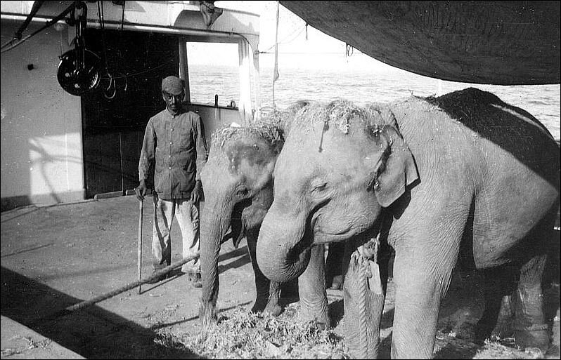 Ну, а оттуда иногда везли слонов :) Паровозы возили и раньше, но зачастую в разобранном виде, к тому же, погрузить их в стране-изготовителе можно было и береговыми кранами, а вот в местах выгрузки такой техники могло и не быть, поэтому пароход снабдили своим подъёмным устройством, рассчитанным на 120 тонн. Так выглядело судно: