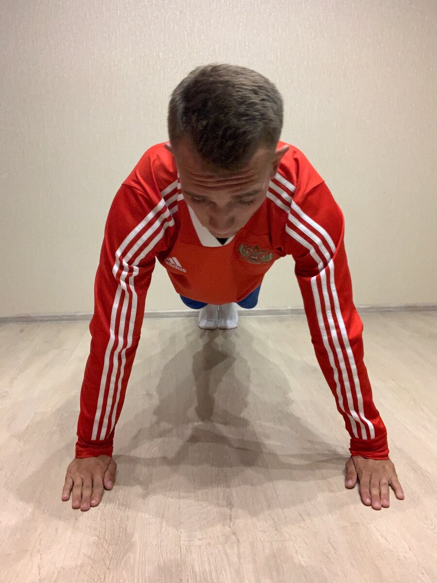Чтобы научиться правильно отжиматься, нужно в первую очередь понять технику отжиманий. Начнём по порядку. Как правильно отжиматься. Правильное положение рук один из факторов правильного выполнения данного упражнения. Руки в классическом упоре лёжа должны стоять на ширине плеч. Ладони смотрят прямо, параллельно туловищу, при этом не выходя за линию плеч. Как показано на фотографии. Также один из важных факторов выполнения отжиманий. Спина не прогибается. Таз не поднимаем и не опускаем. Голова смотрит вперёд. Голова, туловище и ноги должны образовывать одну линию. При этом колени не должны сгибаться. Ноги стоят вместе на носочках. Новички же могу начинать отжимания с постановкой ног на коленях. Далее переходим непосредственно к выполнению упражнения. Выполнение. Всегда отжимания выполняются подсчёт. На счёт << РАЗ! >>, сгибаем руки в локтях, тем самым опуская туловищем ноги к полу ( не нарушая при этом ровную линию между ногами и туловищем). Касаемся грудью пола. Далее на счёт <<