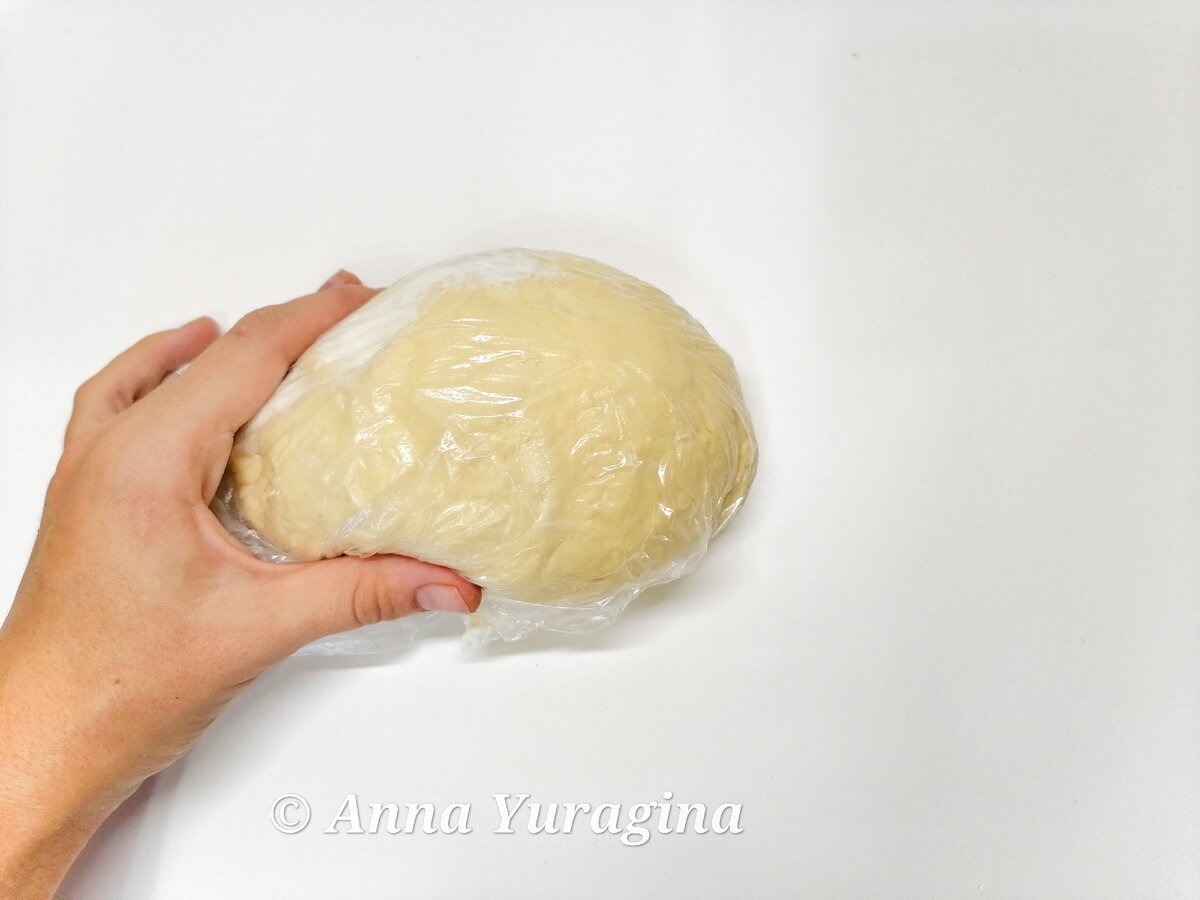 Затем замешиваем тесто и убираем его минут на 10 отдохнуть, тогда она станет мягким и эластичным