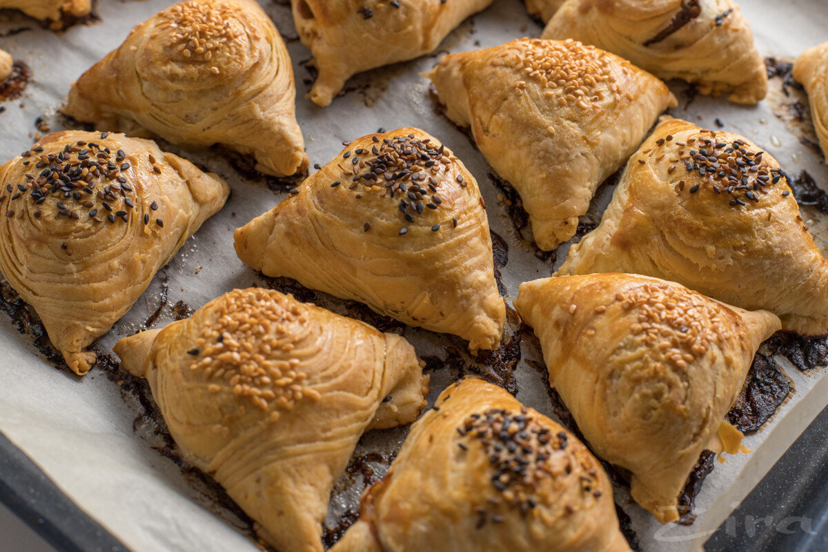 Приготовим хрустящую и сочную самсу. Теплую воду 300 миллилитров смешиваем с солью одна чайная ложка. Она должна полностью растворится. Постепенно добавляем муку 500 грамм. Замешиваем тесто чуть мягче чем обычно делаем на пельмени, количество муки может немного отличаться так как мука разная. Хорошо вымесим тесто, оно не должно прилипать к рукам. Накрываем и оставляем на 7 минут. Чтобы удобнее было с ним дальнейшем работать. Далее тесто делим на три или четыре части. Скатываем каждую в шарик и снова дадим немного постоять. Чтобы лучше раскатывалось все тесто раскатаем толщиной около двух миллиметров. Берем сливочное мягкое масло 150 грамм и мажем листы теста накладывая их друг на друга. Самый верхний четвертый я не смазываю. Аккуратно немного растягиваем и заворачиваем плотно в рулет. Тесто необходимо немного охладить, минут пять. Разрезаем на кусочки и слегка придавим, так она быстрее остынет. Убираем в морозильную камеру на 20-30 минут. В это время нарезаем мелко луковицу 200 грамм